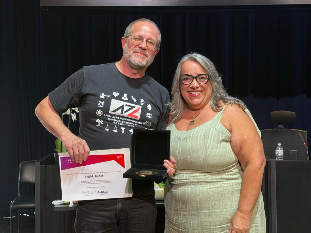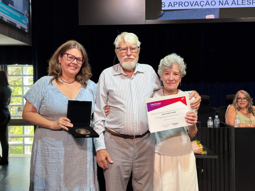 São Paulo, 12 de novembro de 2025 – A Associação dos Pesquisadores Científicos do Estado de São Paulo (APqC) realizou na terça-feira (11/11), na Assembleia Legislativa do Estado de São Paulo (Alesp), a entrega da Medalha Alba Lavras, a principal honraria concedida pela entidade. Receberam a homenagem os pesquisadores Gerd Walter Müller, Rogério Bertani e Osny Tadeu de Aguiar, além das deputadas estaduais Beth Sahão, Mônica Seixas e Leci Brandão, reconhecidos por suas contribuições à ciência pública e à defesa da carreira de pesquisador científico.